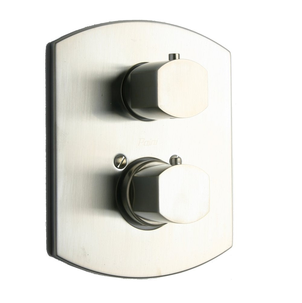 Our 1/2" Thermostatic Valve Trim with Volume Control is the ideal choice for modern bathroom design. This transitional tub and shower trim is available in brushed nickel and matt black finishes to suit your bathroom’s style. Bold, geometric styling and wall mount configuration make this beautiful piece a high-quality fit for your home. This complete trim kit features independent temperature control and progressive volume control and coordinates seamlessly with the collection for endless style possibilities. Make showering and bathing even more luxurious with Our finely crafted tub and shower trim design.
